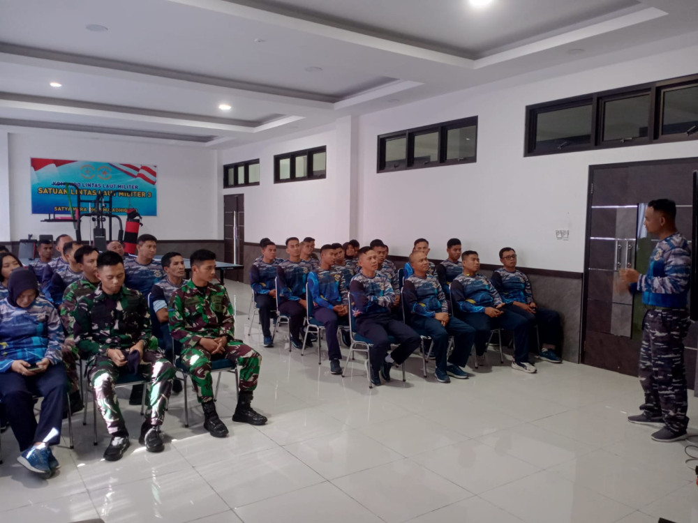 Makassar, Media Info Pesisir – Guna memberikan pemahaman dan bekal pengetahuan hukum kepada personel, Kepala Satuan Provost Satlinlamil 3 Letda Laut (PM) Ardy Windarto memberikan penyuluhan hukum dengan tema “Keselamatan Berlalu Lintas”, bertempat di Aula Mako Satlinlamil 3, Jalan Teuku Umar, Kota Makassar, Kamis (23/1).